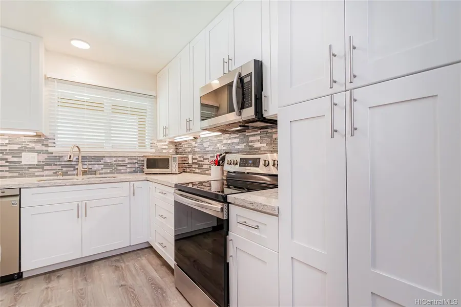 NEWLY REMODELED IN 2021! â?? This is a Better-Than-New 3 bedroom, two bath property located on a quiet tree lined street with EZ access to H1 â?? Exit 10. NEW Stainless Steel Appliances, NEW SMART ACs and split AC and ceiling fans in all bedrooms and Living Room, NEW Hardwood Cabinets with Quartz Counter tops, NEW Lifeproof Vinyl Plank flooring downstairs and NEW carpet upstairs, Upgraded LED lighting, Two NEW Tubs with Deluxe tiled surrounds and custom tile niches, NEW Bathroom Vanities and outlets by Toilets for bidet seats. Move-in ready. Steps to Waiau Elementary and two neighborhood parks. A short commute to Pearl Harbor and many other bases. One dedicated parking space with street parking nearby, Extra storage on your private covered lanai, Great Breeze, steps from Community Pool with BBQ area. Please see extensive upgrade list in MLS.
