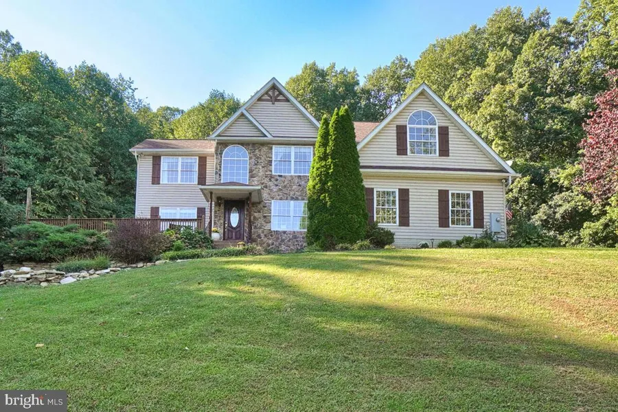 MOUNTAIN ESCAPE. Gorgeous Custom Built home (over 4,000 sq. ft.) in the Catoctin Mountains. Admire the views from this 7+ acre oasis from your wrap around porch. Surrounded by equestrian properties, very peaceful and private. Four spacious bedrooms, 3.5 baths, Primary bedroom includes a separate sitting area/optional home office with doors that close for privacy, three closets and massive bath with separate shower and jet tub and separate sinks. Main level consists of gourmet eat-in kitchen with black stainless steel appliances. Two story family room with floor to ceiling stone wood burning fireplace, wrought iron railings and custom built-in cabinetry. Dining room, living room, large laundry/mud with built in laundry chute from primary bedroom, utility sink and garage access. Den with French doors perfect for a bright sitting room/home office/virtual learning. Walkout basement consists of game room area, wooden hand carved bar, kitchenette, full bath, wood burning stove and an extra private room (currently used as a spare bedroom). Wait, not done, there is also a 24x24 outbuilding. This home is steps away from the exclusive Celebrations Cellars Winery. Minutes away from Cunningham Falls and local orchards. So private, yet minutes to downtown Frederick! This house has it all, a MUST SEE!!! Pool table and wood burning fireplace convey!