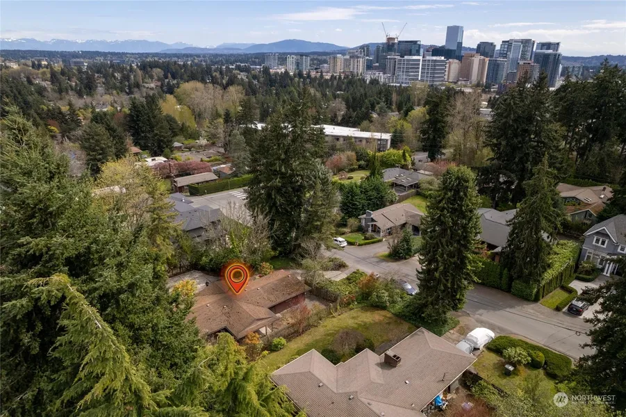 Prime opportunity to live in one of the most sought-after communities on the Eastside! West Bellevue on a large .27 acre lot. This mid-century gem is ready for your updates or build your dream home. The view will be your inspiration. Amazing panoramic view of the Cascade Mountains and the beautiful Bellevue skyline. Walking distance to highly rated Bellevue schools and downtown Bellevue. Hardwood floors on the entire main level plus a cozy fireplace and tons of storage. 4 bedrooms, 1.5 baths. Large, level yard and a detached 2 car garage + shop. Just 5 minutes to world-class shopping and dining at Bellevue Collection.