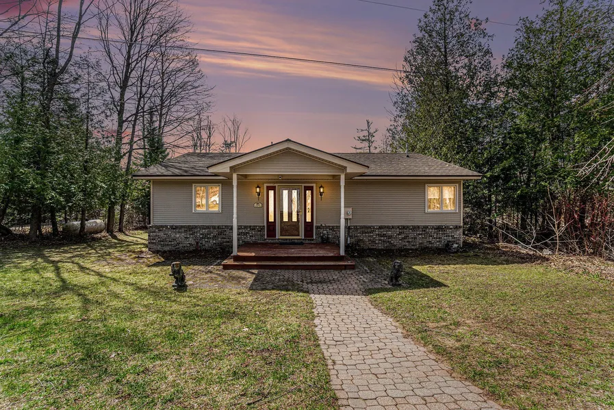 Take a look at this rare opportunity to own a beautiful home on the exclusive Huffman Lake! Spacious and well-maintained 3 bed, 1.5 bath home offering 80 ft of private frontage on all-sports Huffman Lake. With over 1,700 finished square feet, this property is ideal for year-round living or a seasonal retreat as it was used as an Airbnb rental. Interior highlights include a bright and open living room with lake views, large windows, and a walkout to the ground-level deck perfect for entertaining or relaxing by the water. Outside, the home is a dream for hobbyists or those needing ample storage: detached 3-car garage with built-in workbench, plus a massive 60x40 insulated pole barn. Property has a private feel with mature tree coverage and open lake view.