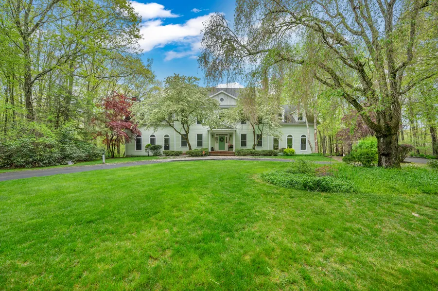 This timeless colonial sits on a private 3.69 acre lot, including mature trees, spectacular landscaping, inviting backyard and stone patio including a new hot tub - Perfect for entertaining! This property includes a spacious two car garage and impressive circular driveway which leads you to the front door. Enter into the charming foyer, that showcases an elegant staircase. The newly remodeled open concept kitchen is an entertainer's dream, with a Viking refrigerator and timeless granite countertops. Just steps away from the eat-in kitchen you will find the grand living room including 14 foot ceilings and a spectacular stone fireplace. The home office has classic charm with its own fireplace near the front entrance of the home. The large formal dining room also has its own fireplace just off of the kitchen and foyer. The convenient laundry room and pantry is steps away from the two car garage and kitchen. Upstairs you will be impressed with the two primary suites. The first has a lovely sitting area with its own fireplace, an excellent option for a second home office. The bathroom has been completely remodeled in this suite with two large walk-in closets. Step down into the large sleeping quarters - a true sanctuary. You will also find one additional suite just down the hall, this has a large walk in closet and remodeled bathroom within. With three additional bedrooms and one remodeled full bath on this floor, space is never an issue.