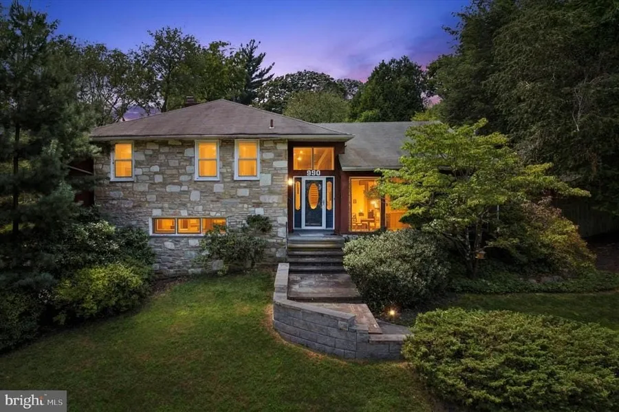 **Abington Township** Welcome to 990 Indian Creek Road, a beautifully maintained stone-front split-level home in Jenkintown Manor offering more than 3,000 square feet of living space with 4 bedrooms and 2.5 baths. The open floor plan is ideal for entertaining, featuring a sun-filled living room with cathedral ceilings and large windows, a spacious kitchen with abundant cabinetry and an oversized island, a formal dining room, and a family room with a stone-front gas fireplace. The primary suite includes a tile bath with walk-in shower and a large walk-in closet with laundry. The finished lower level provides flexible living and storage space. Outdoor amenities include a sparkling saltwater pool, relaxing hot tub, Trex deck, outdoor dining and grilling area, a pool cabana with a convenient half bath and changing room, and a greenhouse. This rare offering in the award-winning Abington School District is just minutes from shops, dining, and major roadways.