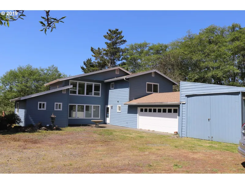 Large, open concept home with master bedroom & 2 baths on main floor. Upstairs has 2 bedrooms and bath plus reading nook with ocean views. Tons of room for boat or RV with attached over-sized garage plus boat garage. Gardens, pond, creek, and some ocean views. Huge wrap-around deck. Siding, roof, and windows replaced 5 years ago. There's even room for your horse on this 1.5 level acre parcel.