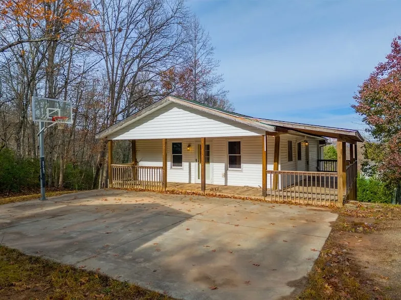 This 2-bedroom, 1-bathroom house is conveniently located near town, providing easy access via a paved road in a pleasant area just past Macon Middle School. Tucked away, these homes often go unnoticed. The property spans 1.35 acres of unrestricted, level land, ideal for a garden, mini farm, outdoor activities, or simply enjoying the view from the deck. You can enter the home from the wraparound deck into the living room or through another door into the kitchen. The bedrooms and bathroom are centrally located, while a bonus room and laundry room are situated on the opposite side of the kitchen. The downstairs area is unfinished and currently used for storage.
