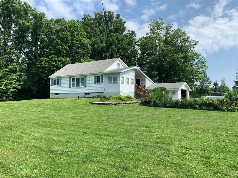 This is a great opportunity with a great location. The home is situated on 1.26 acres and surround on three sides by golf course. A perfect private retreat. With 4 bedrooms and 1.5 bath, and over 1700 square feet of living space , there is plenty of space for everyone. House has great bones and character and with a little TLC it will shine. Lots of window, some hardwoods. Built - ins in the upstairs bedroom. And hints of mid-century architecture. There is a full basement with lots of ceiling height that can be accessed through the garage. The garage is large enough to park a car with plenty of space left over for a workshop or your lawn stuff. There a barn with a loft and covered overhang, that would be perfect for your storing your business equipment and tools. Chittenango School District. Conveniently located just 20 minutes from Syracuse and just minutes from Oneida Lake. In fact there is a boat launch, just 1 mile away.