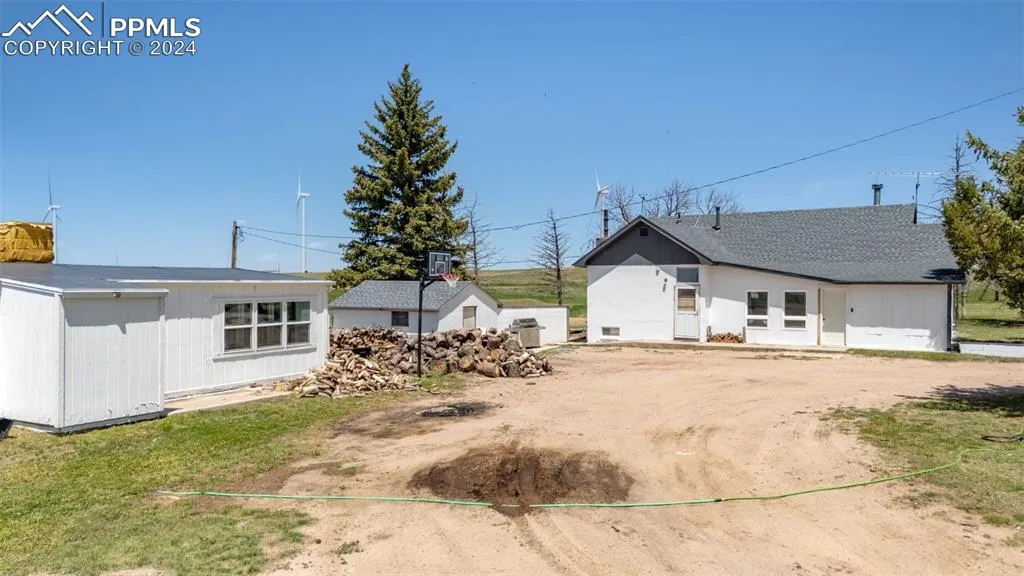 Welcome to your dream property nestled in the serene countryside near the picturesque Painted Mines and charming town of Calhan. This delightful 1,580 sq. ft. home offers a harmonious blend of comfort, functionality, and tranquility across its 3 bedrooms and 1 bath, set upon a sprawling 4-acre expanse. Discover the joys of country living without the constraints of covenants or HOA regulations, A-35 zoning. Feast your eyes on the breathtaking vistas of Pikes Peak and the expansive plains, providing a daily spectacle of natural beauty that will never grow old. Perfect for creative pursuits or hobbies, this property boasts a versatile sound studio/outbuilding, a spacious shop, and a convenient loafing shed. Mature trees lend their shade and timeless charm to the landscape, creating an inviting atmosphere for outdoor relaxation and entertainment. Step inside to find a seamless fusion of modern updates and cozy rustic charm. Adorned with vinyl and tile floors, a wood-burning stove, and ample natural light, the home exudes warmth and comfort throughout. The updated kitchen features butcher block counters, a pantry, and all the conveniences necessary for effortless living. Experience the luxury of a high-producing well, while a storage area caters to your organizational needs. Secluded and private, this property offers the ultimate retreat from the hustle and bustle of city life, allowing you to savor the peace and serenity of your surroundings to the fullest.