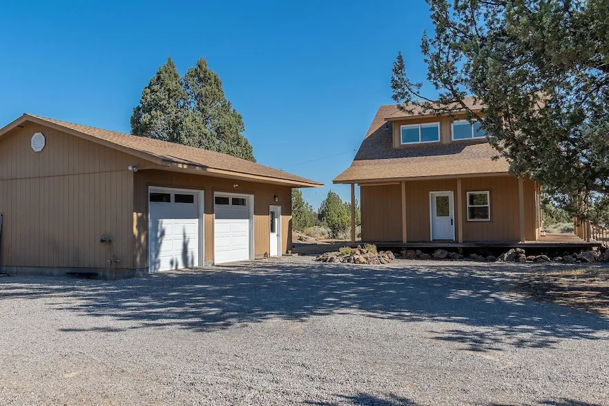 You will fall in love with this custom home & all its amenities! From the wrap around porch, to the bayed French doors leading to the outside water feature, to the hardwood flooring, this home exudes quality! The main level is open, and includes a beautiful fireplace, with mantel and the ability to use propane or wood. Enjoy a luxurious bath while relishing nature, just beyond the large picture window, or utilize the ample size showers. No lack of storage. The builder used every inch of excess space for storage. Access miles & miles of public land, from your rear property line, for hiking, riding, or ''wetting-A-line'' in the infamous, Deschutes River. The fenced-in garden is ready for next year's planting and the 896 SF garage boasts 2-bays, a shop,1/2 bath and a studio, for the artist or long-arm quilter. What's not to love in this 1554 SF home, on a 3.84-acre private acreage! At night the only light you will see is a thousand stars in the sky, not the light from your neighbors