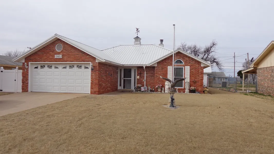 You will love this pristine 3 Bedroom 2 bath Home built in 1995. with tall ceilings and open concept living. Beautiful gas log fireplace in the living room. There is tile in the entry way and dining and kitchen, laundry and bathrooms and like new carpet in the bedrooms. There are lots of windows along the west wall of the living room and dining room. The sellers are leaving the fridge and kitchen appliances. The laundry and kitchen has lots of cabinets and a pantry for extra kitchen stuff. With the tall ceilings and the utilization of space the home feels roomy. The master bath has double sinks and a walk in closet lots of storage. The home has newer vinyl Windows. Oak cabinetry in all areas. Alarm System rented and monitored. The home has a 1 year old steel roof and steel siding on the fascia and soffit. There is vinyl fence all around the back yard. Back yard well for watering the lawn and lawn sprinklers . Three sheds, indoor covered storm shelter.