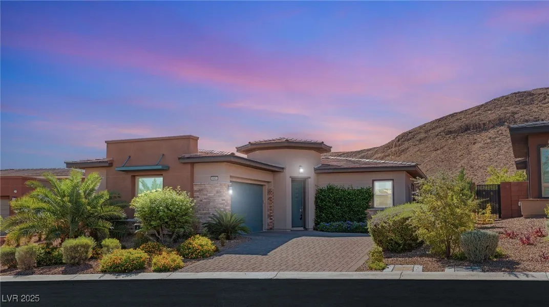 Experience luxury living in the guard gated, lifestyle community of Regency! Nestled against the foothills of Summerlin South this property sits on an oversized homesite with no rear neighbor behind! A vaulted rotunda welcomes you into a massive open concept living area flooded with natural light. You will love the slab marble island, custom deco backsplash, crisp white cabinetry, stainless appliances, and wood-look low maintenance tile flooring. Great room offers 2 double stacked center sliders for seamless indoor/outdoor living. Primary bedroom offers large spa shower, dual vanities, and a generous primary closet w/California Closet built-ins. Both bedrooms offer slider access to your private covered patio with an in-ground spa. State of the art clubhouse offers indoor and outdoor pools, fitness center, pickleball, tennis and social calendar. You are minutes from Downtown Summerlin, Durango Station, Costco, Hospitals and more!