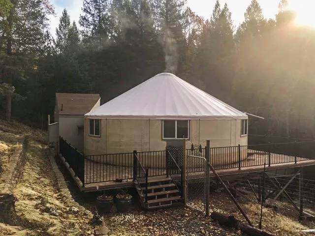 Well appointed quality 33 Yurt, with attached bath/laundry room with huge walk in shower. Fitted with both a wood burning fireplace and propane heater. Features a private bedroom and a half loft for guests. Has a Large trex side and front deck with nice covered patio. Property also has a set of engineered plans for a spectacular stick built, on the grid tiny home. Soils testing already completed for future septic system. Yurt already has a septic system. Large private South Facing clearing that has been masticated, which offers a 12+ hour sun path for great future solar system / main house site or possibly a garden. Not too many great Ag parcels still available so close to town, Priced at $399,000 with possible short term Seller Financing with a strong Down Payment.
