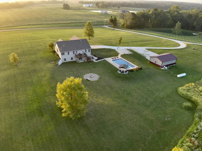Welcome to your forever home! Located just 8 miles West SouthWest of PalmyraMO on State Highway U, and 6 miles North of US Highway 36, in Marion County. There is an opportunity to buy this home and 10+/- acres. Additionally, there is another stand-alone 10+/- acres to be purchased with or without the home. Asking $135,000.This home is in PalmyraR-1 school district. All Blacktop access! A perfect mix of timber and gently rolling agricultural landscape right out the back door! Deer will be your most popular visitors in the evenings.This home was built in 2003 and has 4 bedrooms and 3.5 bathrooms. A new roof was installed in 2021! A two-car-connected garage with a concrete apron. Inside, you will find brand-new flooring throughout the main level as well as the finished basement. An open floor plan connects the kitchen, dining room, and living area with an exterior door right to an elevated deck to enjoy the scenery of the property. There are two full bathrooms on the main level along with 3 bedrooms. Both bathrooms have been remodeled within the last 5 years. Going downstairs, you will notice a huge open living space with a bar, a separate bedroom and two bathrooms. One of which is a full bath and one-half bath. The patio doors going out of the main living area lead you to sidewalks that connect the house to the 20x40 in-ground pool with a pavilion in the back corner to sit down and relax by the water. Just off the main driveway, is a 24x30 shop with concrete floors. It has two bays and is a blank canvas to make it your own! &Don't miss out on this perfect property!&Main Level : 1920 sq ft.Total Living Space : 3840 sq ft.&