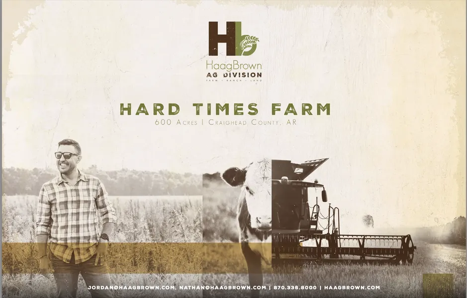 We are proud to offer the Hard Times Farm, a tremendous investment opportunity, which consists of approximately 600 +/- total acres and 533 +/- tillable acres of precision leveled and fully developed farm ground in Craighead County, AR. The current owner has spent countless hours developing this farm into a high producing turn key operation. This efficiently irrigated land is highlighted by 6 wells, 19 risers and an immense amount of underground piping connecting it all together. With 2 Relift Pumps, Multiple Weirs, and 2 separate Tailwater Recovery Systems the farm utilizes the Mud Creek that flows through the property to maximize irrigation and drainage. This farm also comes with 80,000 bushels of grain storage and a 60x60 with a 30x60 lean to Machine Shed to store your Equipment. Nestled in the heart of Crowleys Ridge just 5 miles North of downtown Jonesboro there is a vast amount of future residential development opportunity to even further maximize your investment in years to come.