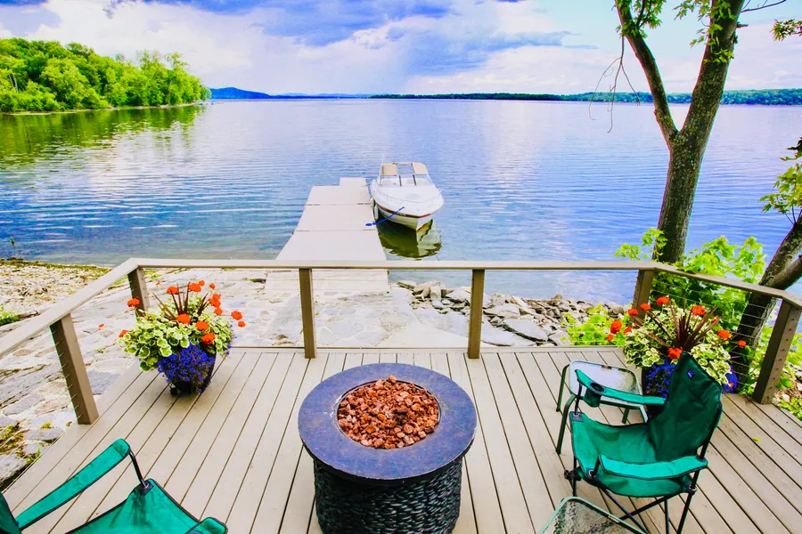 This island location in a quiet bay is perfectly suited to all water sports. The bay is excellent for kayaks, canoes, paddle boards, small sailboats and fishing from the dock while the broad lake is at your fingertips for jet skis, larger motor and sailboat activity. From the decks you can enjoy watching the eagles and osprey dive for a meal, along with a bevy of other birds. At the shore see who will catch the biggest fish or skip a stone the longest distance? At night, gaze at the stars while you sit by the fire and listen to the water lapping at your shore. You can take a day trip by boat to any number of towns along the Lake Champlain shores for lunch. Two moorings are included as part of this property that provide for any water craft, especially large boats that might beckon you to take a day or weeklong trip on the lake as far as Canada or the Atlantic Ocean, if your heart desires. Other features include - 800 + waterfront, 40 dock, 1 car garage, childrens treehouse. Much of this property is undeveloped, which can be expanded according to the owners imagination. If inclined, fifteen minutes from your marina by car will take you to Vermont where you can explore nearby picturesque towns such as Middlebury and Burlington. Or venture further into the Adirondacks to Lake Placid, home of the 1980 Olympics, or climb one of the high peaks. The Adirondacks abound with a variety of unique destinations, including one very unique private island retreat.