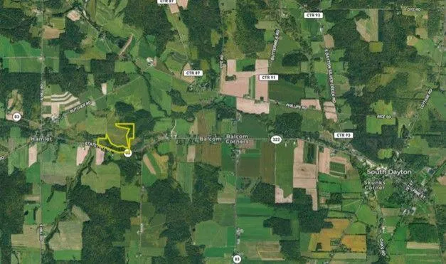Just west of South Dayton is a hunting tract with cornfields at its center and a tillable field included that can be put into a food plot or left in tillable and rented to the local farmers. If you are looking for a gentle and level building lot, this property might be that country retreat you are looking for, with deer hunting out your back door. The West branch of the Conawango creek meanders through this property. A small hunting cabin sits on the river bank for campfires by the sound of the stream or for use as a central spot for deer hunting and warm shelter. A small kitchenette and a small upper loft are convenient, making spending the weekend or opening day a little more comfortable. Deer sign is abundant as they move from the river banks through the cornfields to the woods on the north side. A land bridge provides a second access point across the Conawango river. Deer use it too, actually. South-facing views make this a property that would be a prime candidate for building a country home. Priced well to sell.