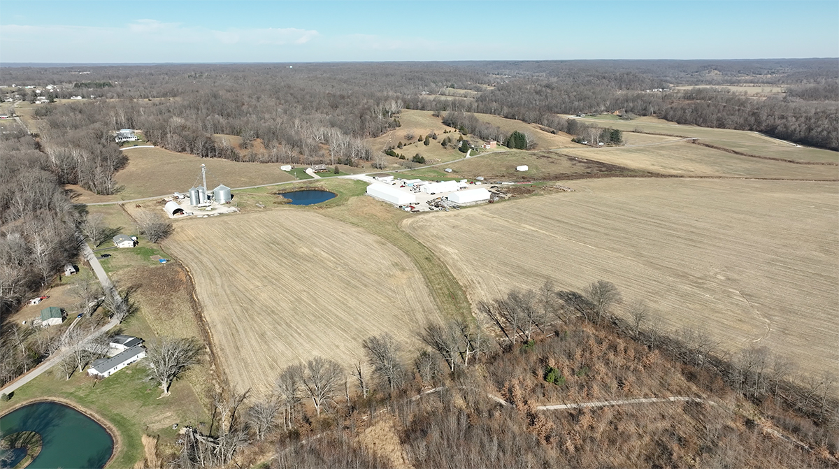 TRACTS 24, 25 & 26: 37.35 total acres with 21+/- tillable acres; 30,000 SF buildings and 2,280 SF office space with 109,000-bushel grain storage facility including 8,000 (bu/hr) grain leg and drive over grain pit; hoop barn onsite.