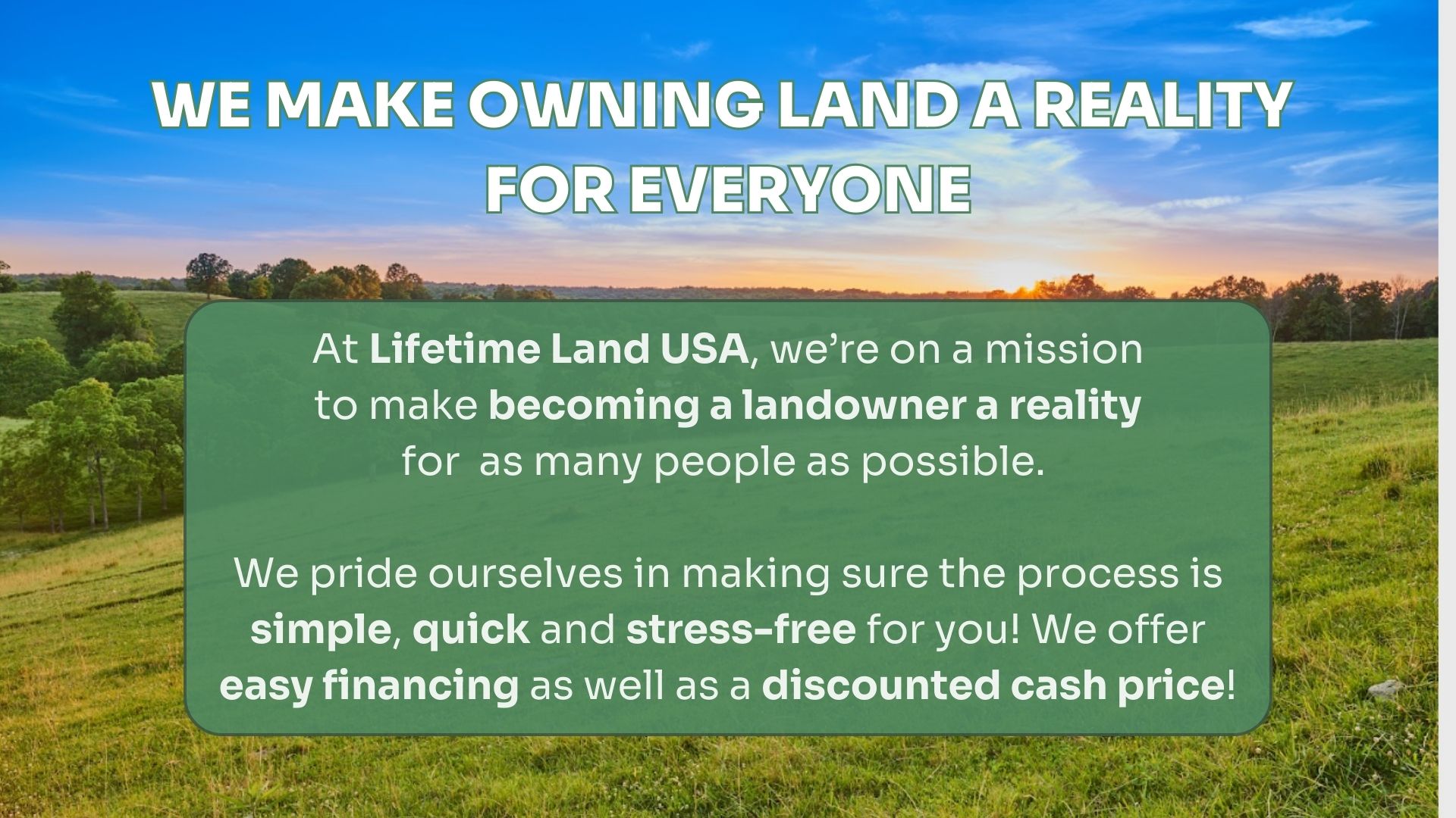 Here at Lifetime Land USA we pride ourselves in making sure the process is simple, quick and stress-free for you! We also offer easy financing as well as a discounted cash price.