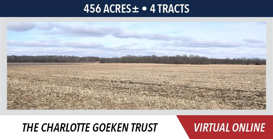 Make plans now to participate in this upcoming Davis County, Iowa land auction. Tracts 1 3 offer productive tillable farmland as well as awesome hunting and recreational acreage. Tract 4 features a single story 3 bedroom country home and a detached 2 car garage all situated on over 2 acres. This farm has been owned by the Goeken family for several years and is conveniently located just east of Bloomfield, Iowa on a hard surface road. You will not want to miss the opportunity to bid on this nice farm!