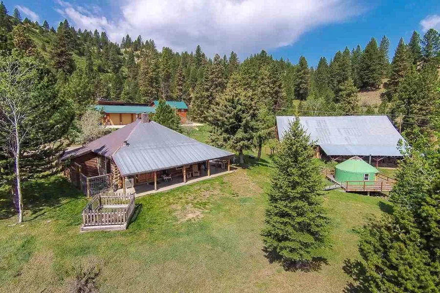 Back when Wilderness Ranch was a working ranch (3J brand), this was the ranch homestead. Placed on the top edge of a gently sloping mesa. The house has fabulous views of the surrounding countryside. The main structure is large logs. In 2012 owner rebuilt and remodeled the interior using mostly knotty alder with cedar ceilings and high end finishes throughout. Among it's features is a Japanese style bath with a 48" square deep tub (2 person). Some custom furnishings included as stated in listing.