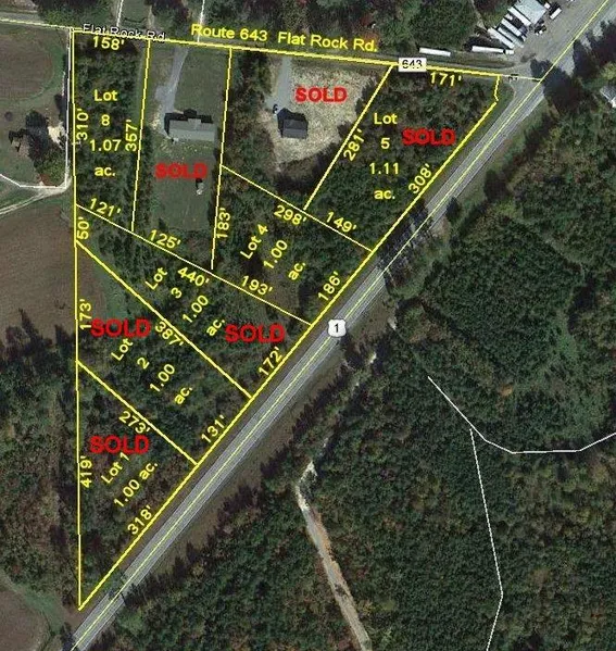 One acre wooded, 0ne mile off I-85. Conventional perc. Ok for doublewide manfactured home or stickbuilt home. 50 miles south of Richmond. Owner willing to finance with low downpayment.