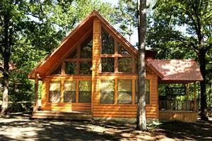 This is a beautiful, Chalet-style cabin near Beavers Bend State Park. Large windows adorn the stunning front of the cabin. It is an open floor plan, "honeymoon" cabin. It is designed to appeal to couples wanting to have a relaxing retreat in a wonderful setting. There is a dramatic, floor-to-ceiling double-sided fireplace that is the focal point of both the living room and the bedroom. Brazilian cherry floors, knotty pine tongue and groove walls, and rustic dark oak accent woods are highlights of the eye appeal of the interior. A Jacuzzi-style corner tub in the bathroom and a 2 person hot tub on the deck outside beside a small stream provide opportunities to wash away the cares of the world. It has a covered grilling porch off of the highly functional kitchen area. The loft area is a perfect perch to curl up and relax or read. The location is just minutes from the lower Beavers Bend State Park area. The cabin comes fully furnished, including full sized washer and dryer, appliances, and hot tub and is ready for immediate occupancy or rental.