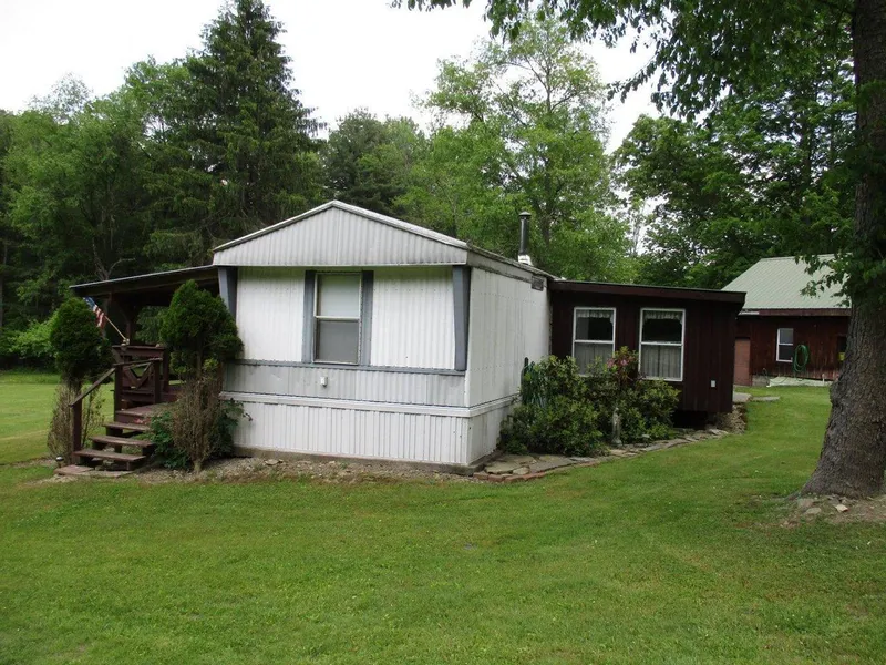 New York wooded land with a turn-key hunting cabin with 2 car garage, utilities, hunting stands, stocked bass pond and stream for sale. This turn-key camp and all utilities is a rare find. Situated just minutes from Corning and in the heart of some of the finest whitetail hunting in NY state, it's a sportsman's paradise.The camp consists of a remodeled single wide trailer and two additions, including a recreation room with pool table and a hot tub room. Two covered porches add to the relaxing charm of this secluded hide away. With two bedrooms, two full baths, kitchen, laundry area and living room, you'll feel right at home. There's even a two car garage/shop with a loft for plenty of storage and a place to work. Electric is provided through a 200 amp service and water is supplied by a drilled 150' well. There's even a backup gravity feed spring to the camp so if the power goes out, you still have water. A wood stove and propane forced air will keep you warm and toasty.This offering even includes a Simplicity zero turn mower and an older Ford 4wd diesel tractor with front end loader.Head outside and do a little fishing in the fully stocked bass pond (there's also perch and blue gill) or just enjoy the relaxation provided by this property. Several small streams traverse through the land and provide plenty of water for wildlife.The woods consists of hemlock, white oak, red oak, white pine and some hard and soft maple scattered about. The terrain ranges from rolling to moderately steep and an extensive trail system provides great access throughout. Although there is 410' of road frontage, entrance is best gained through a deeded right of way/ driveway. The property is enrolled in the NYS DEC 480A plan (with the exception of 7.75 acres around the camp and two additional areas totaling .69 acres that can be used for food plots or other purposes). This plan provides property tax relief in exchange for proper forest management and property maintenance provided by the owner on a schedule set by the DEC. The current owner is retaining all gas rights, but oil, mineral and timber rights will transfer. Shown to qualified buyers by appointment only .