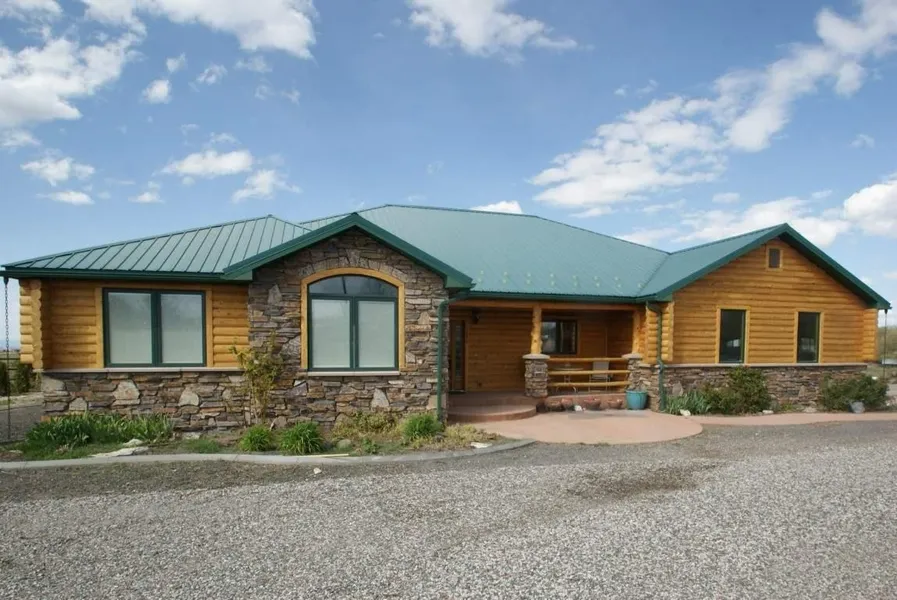 A Rare Find. Beautiful Custom Log home on 43 acres (ZONED R1) Gourmet kitchen with Hickory cabinetry and flooring. Open floor plan with lots of natural lighting. Panoramic views. Extras include 24X36 shop, historic rock barn and 3 bedroom 2 bath rental home (currently rents for $675/month.