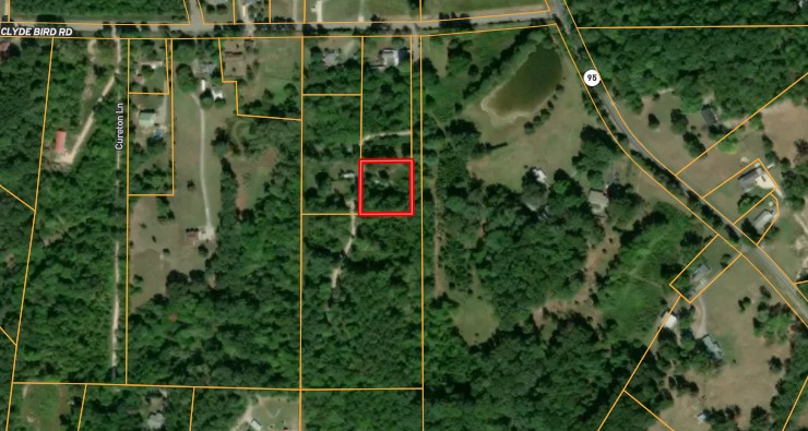 This property at 1340 Clyde Byrd Rd in Rock Spring, GA sits behind a house and next to a small trailer. The terrain is gently sloped from front to back and covered with mature trees. An old trailer and some debris will need to be cleaned up before building. Power lines are already on the property, and city water is available, making future development easier.