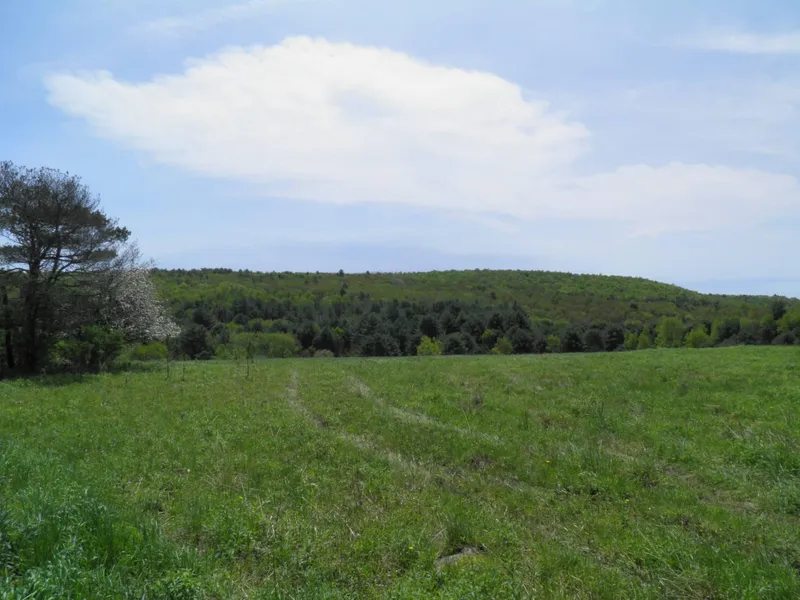 NYS Southern Tier Hunting Land with fields, woods and stream For Sale: This region of the Southern Tier, is characterized by rolling terrain with cropland and woods interspersed between hilltops and river valleys. This property is no exception. Portions of this late 19thth century farm have reverted back to forest and the barn is the last standing structure (although probably not for long). The stone foundation of the farmhouse is located on the north side of the highway opposite the barn. The owner has no knowledge of the location or usability of the well or septic which serviced that residence long ago. Three phase power is available roadside. The land characteristics include; ~17 acres of hay field, ~35 acres of woods, ~10 acres of pasture and ~5 acres of wetland. This combination of features is favorable to support numerous game species year ‘round, including: deer, turkey, grouse, woodcock and rabbits. The woods south of CR 16 consist mostly of white pine, from saplings to mature, but poor quality sawtimber, and areas thick with sapling and pole size hardwoods. The area north of CR 16 is a mix of good quality hard and soft maple, birch, basswood and ash with a small stand of mostly hemlock north of the house site. There is no evidence of recent timber harvesting, however I would guess that some harvesting was done in the southern woods 20-30 years ago. A tributary to Stony Creek runs through the southeast corner of the property. It is there that you’ll find evidence of a healthy beaver population. Their dam on the eastern boundary is roughly 5’ high. It proved to be a great crossing site adjacent to an old farm dike now maintained by the beaver as well. Stony Creek flows southwest into the more popular Butternut Creek, famous for large and smallmouth bass, walleye, chain pickerel, rock bass and perch. This property lends itself to some fantastic hunting opportunities. Otsego County’s adult buck and antlerless deer take densities fall between 6 and 8 per square mile. An abundance of evidence was found on this property to support those numbers. I have no doubt that you’ll enjoy the wildlife activity on this property. And if you’re not hunting, it won’t be difficult to just relax and enjoy the view!