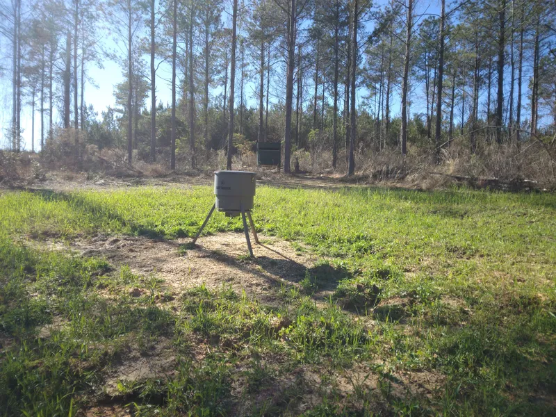 Property contains 25ft avenger camper by forest river that sleeps 6. 25x14 metal outbuilding for camper, 12x20 metal outbuilding, 2 4x6 all weather shooting houses, 1 tent stand, 1 20ft Denali double ladder stand, 4 Moultrie digital game cams, 2 auto game winner feeders, 2 trough feeders, and 1 Moultrie digital feeders. 350 gallon water tank.