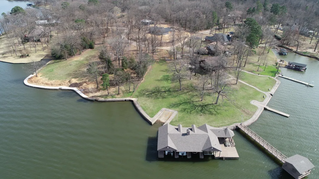 Unique opportunity on Lake Bob Sandlin. Over 750 feet of prime lake frontage in the center of Lake Bob Sandlin. Property includes 4 waterfront lots, large 1900+ square foot boat house, dock, 2400 square foot log cabin, concrete retaining wall and plenty of scenic building spots. Not too many spots on the lake that possess the location, amenities and views that this property has to offer.