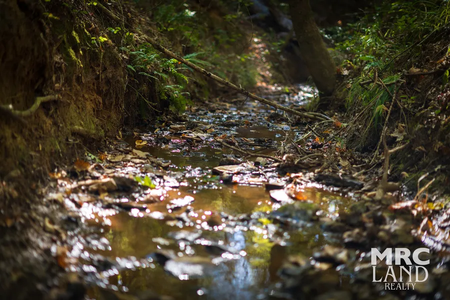 The front of the tract sits on a high point, making for an ideal build site near the road and power, while the interior rolls down into a dramatic hardwood ravine, where a spring flows year-round through an open forest floor. This feature alone is a standout—crystal-clear water, open canopy, and game sign all over the place. With the terrain already in your favor, this area could easily be dammed up to create what many consider to be the pinnacle feature for private property—a stunning, deep spring-fed lake, cool, clean, and tucked into the trees like something out of a postcard.