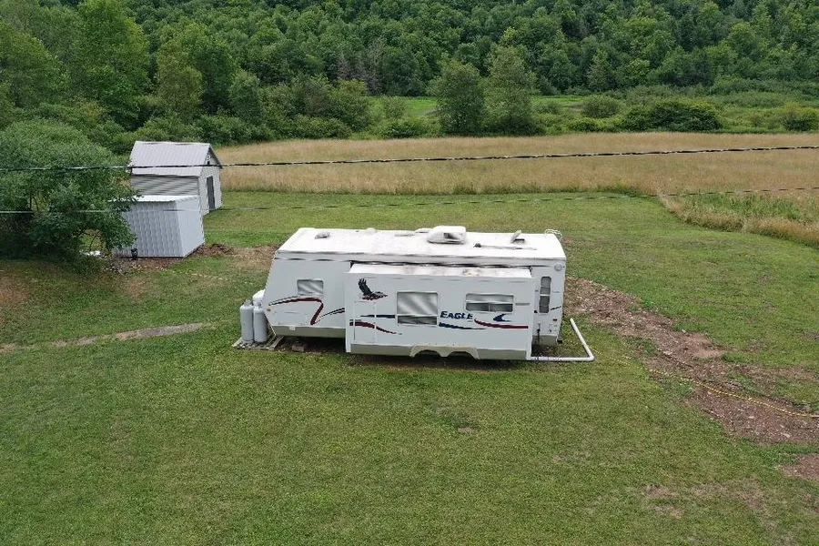 Included in the sale is a camper which is hooked up to electric, septic and has a brand new well for water. There is also a natural gas hook up if the new owner wants to use it. Also, there is an outdoor shower with a new hot water tank and pressure tank. A newly built shed for plenty of storage is also included. A garage is located at the road for more storage. The property has roughly 550 feet of road frontage, and there is a gravel driveway off the main road for plenty of parking.