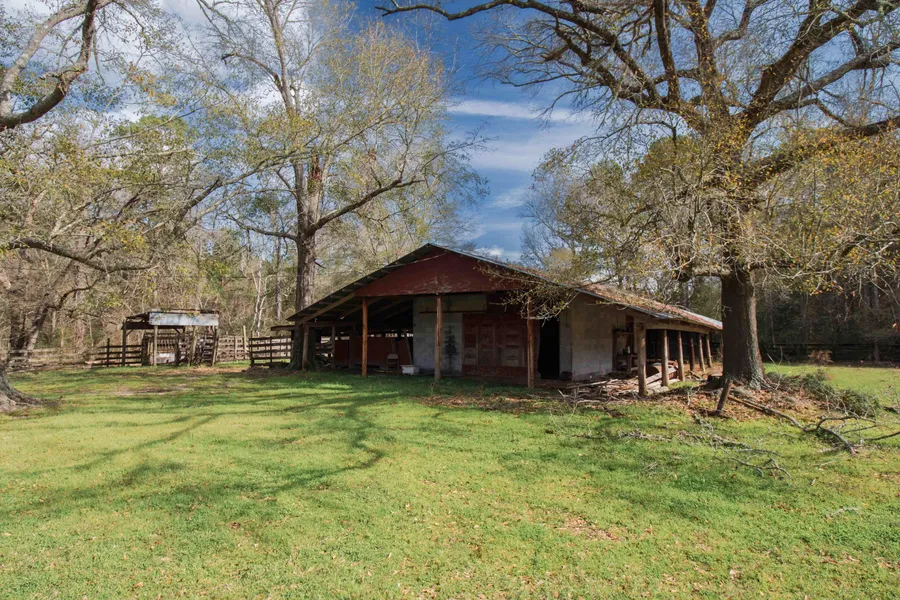 Behind the barn runs the Cowpen Branch creek, a sandy stream that runs year round. Crossing the stream leads to large hardwood and pine forest with minimal undergrowth making it very accessible by foot. Though the front of the property is perfectly suited for a build site, it is worth noting the advantage of contructing a small bridge over the creek to access an exeptional area of the property, adding privacy and character to a potentially gorgeous homestead nestled in the woods over a running creek, the experience would be sure to brood envious and well impressed guest.