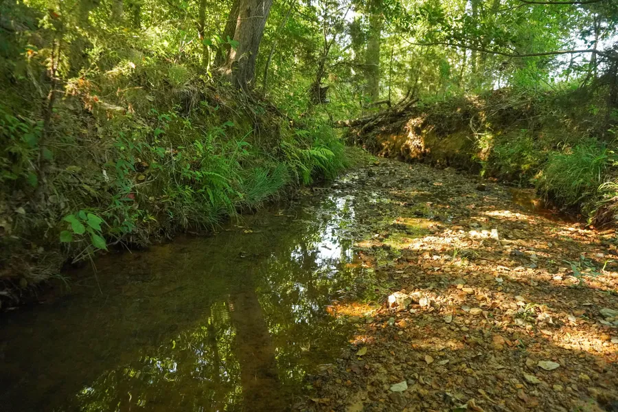 This property has over 100 yards of frontage on a beautiful, year-round, spring fed creek. This creek area is picturesque, with clear water, rocks, ferns, large overhanging hardwoods, and sharp creek bends. Plentiful whitetail deer sign can easily be spotted around this area. This property is also on both sides of the creek for over 100 feet near the north boundary, allowing for fencing on both sides for livestock to water.
