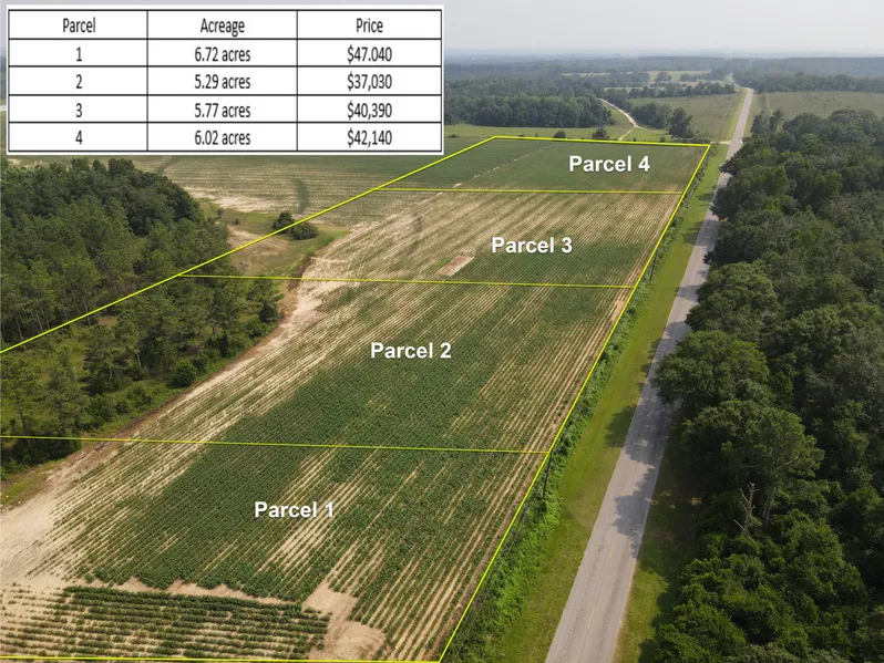 Nice parcel with plenty of room to garden, raise livestock, and just relax. Mostly open land that is flat and well suited for building. There is power and county water available along Dale County Road 61. Convenient to Dothan, Ozark, Abbeville, and Fort Rucker; shopping and other necessities are a short drive away. Parcels are restricted to site-built homes only. Parcels will be surveyed as they are purchased and priced per surveyed acre to ensure buyers get all they are paying for.