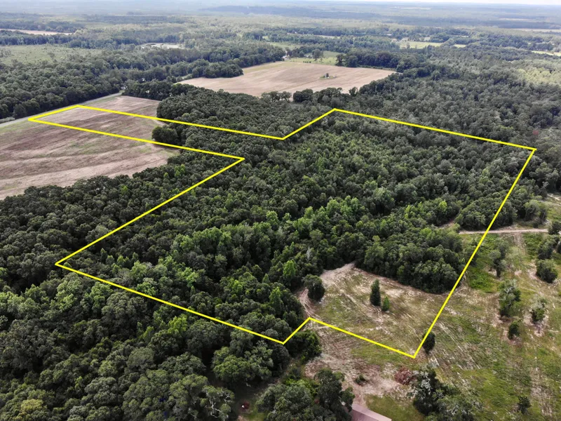 Approx 3 acre in front - flat and open farmland - perfect for homesite. Behind the open land is beautiful hardwood timber land that's perfect for hunting and recreation.