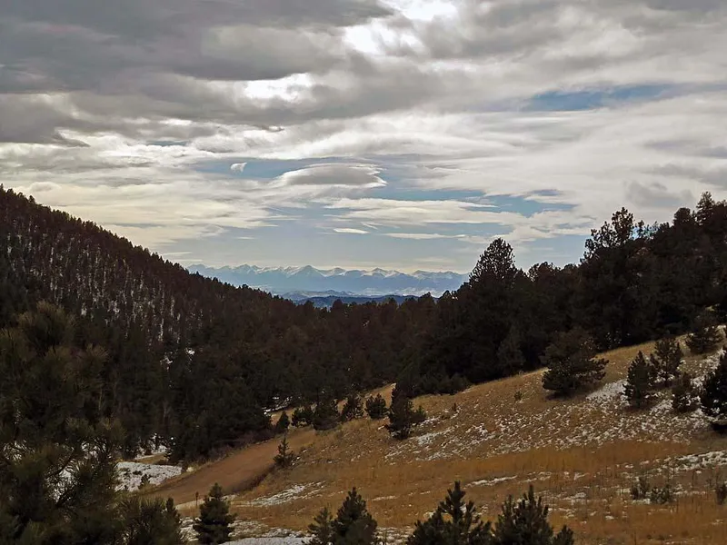 This property is not part of any subdivision, but has very easy access. There is a high ridgeline that faces south making it excellent for solar. At this ridgeline you overlook a deep canyon that perfectly frames in the snow-capped Sangre de Cristo mountains. The land is mostly treed and has pockets of government land to make it feel even bigger. Only $39,900.