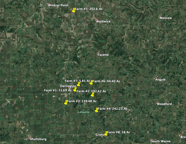 Research Parcel InformationThese 8 farms all located in Lafayette and Iowa counties. Call for directions