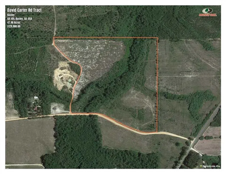 47.48 Acres Land for Sale located on David Carter Road just outside of Baxley, GA in Appling County. This property has 1,550+/- feet of dirt road frontage on David Carter Road which is county maintained and is only 650+/- ft from Ten Mile Road which is paved. It has been planted in Long Leaf Pine and Power has already been run to the property to a potential home site. There is a creek that runs through the property providing a great buffer to the property as well as a travel corridor for game to travel the property. The is also a private dirt road that is the westerly boundary providing good access to the property. With the Long Leaf Pines being planted the property doesn't require any additional input and can either be further developed or left to appreciate with Timber & Pine-straw production already in motion. The area has great Whitetail Deer ad Turkey Hunting that will only get better as the timber matures. The property is only 4+/- miles outside of Baxley, GA which has shopping and restaurants. This 47 acre property is approximately 2 hrs from Jacksonville,FL - 1 hour from Brunswick, GA - 3.2+/- Hours to Daytona,Fl - 4+/- hours to Orlando Fl. Land for sale in Baxley, GA 31513. Sale includes all water rights, mineral rights, oil and gas rights. Contact Mossy Oak Properties - Jonathan Mann at 912-278-1271 or Terrell Brazell at 912-674-2700 for more information.