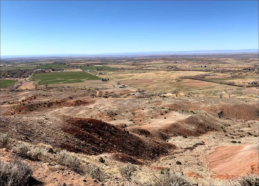 Land is a mix of flat land, hills, ridges, and mountain bench land