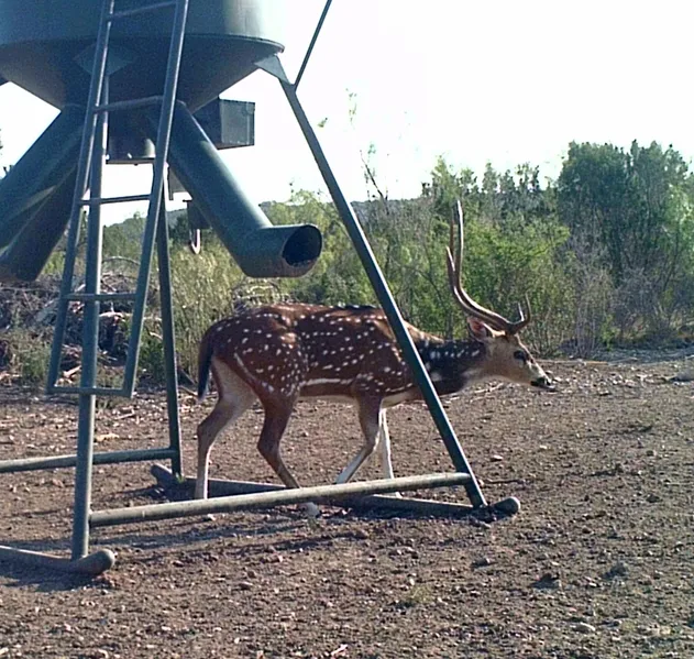 5 Atascosa 5x7 hunting blinds, 5 Outback dual 3500lb corn and protein feeders, 2 concrete watering troughs providing year round water and feed for the wildlife