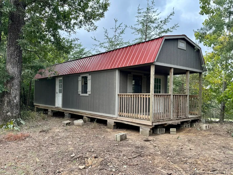This privately set acreage offers a quiet and laid-back place to relax. Recently roughed-in the driveway along with fresh stone having just been put down make for access along the ridge top to the cabin site. Once there, you will find a newer, unfinished 12 x 40 cabin. The current owner has started the wiring with a breaker box (100 amp service) and wire ran to all the rooms. The bathroom and kitchen are roughed in with a tankless hot water heater installed. A propane gas heater with line in place as well for the heating source. Some interior walls with ceilings have had metal added for a finished look, but at this point, it's still very easy to complete, subject to a new owner's likes and styles. Utilities are running along the property and should be easy to hook up and utilize. The property itself is sloping and runs down to the foot of the hill where some seasonal water flows and a thick shady valley lies. This area provides cover and a cool place for the wildlife to hide in the summer. The area holds many deer and offers great hunting opportunities, with deer regularly seen. A survey has just been completed and corners marked for visual identification of property boundary.