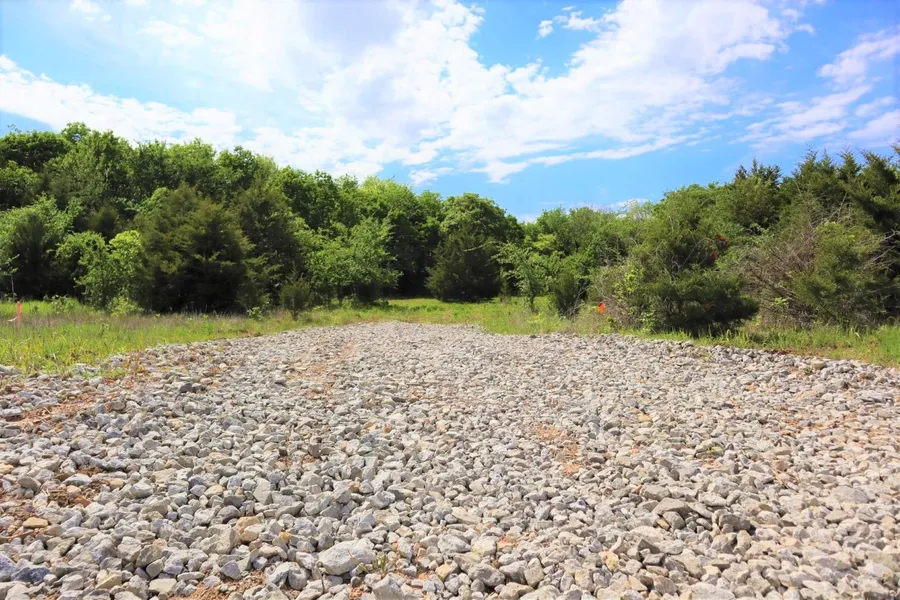 We cleared all of the brush (leaving trees 6 in diameter), performed stump grinding, set a driveway with a road base and gravel finish, and roughly grade the land. The county has installed a tinhorn culvert for drainage at the road.