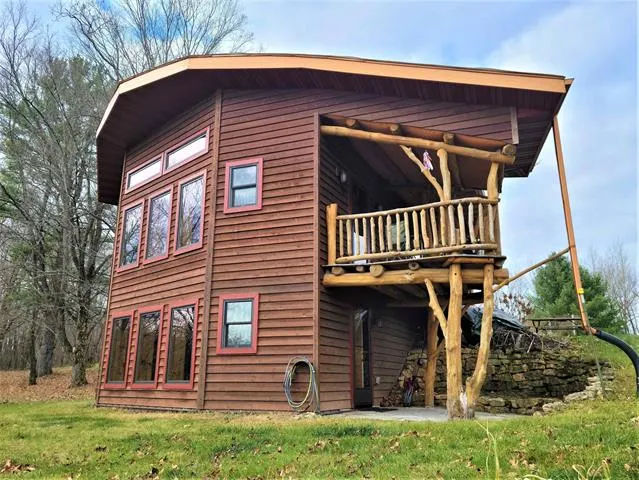 RARE OPPORTUNITY to own CUSTOM BUILT, Roald Gunderson "WHOLE TREES" ARCHITECTURE, 1 Bed, 1 Bath Home on 1.36acres w/Magnificent Views, direct access to Public Lands. Comfortable, Efficient, Sustainable, Year-round, Rural Living 30 min. from Viroqua. In-floor heat, 1-ft.thick walls, Quality Windows,Finish Materials, Doors & Fixtures. Open Kitchen, Great Room w/Walk-out to 10x16 Deck & 9x10 Deck. Earth-Birmed, lower level Primary Suite, Full Bath, Walk-in Closet, Laundry, walk-out to Covered Patio, Lawn, Woods. All Organic Land, Shared Driveway, Well and Septic, Established Garden Beds, Fruit Trees, Vented Root Cellar. Creative, Quality Construction & Care for Environment in Welcoming, Quiet space. New owner to separately purchase equity share in 150 acre Trust, including this parcel.