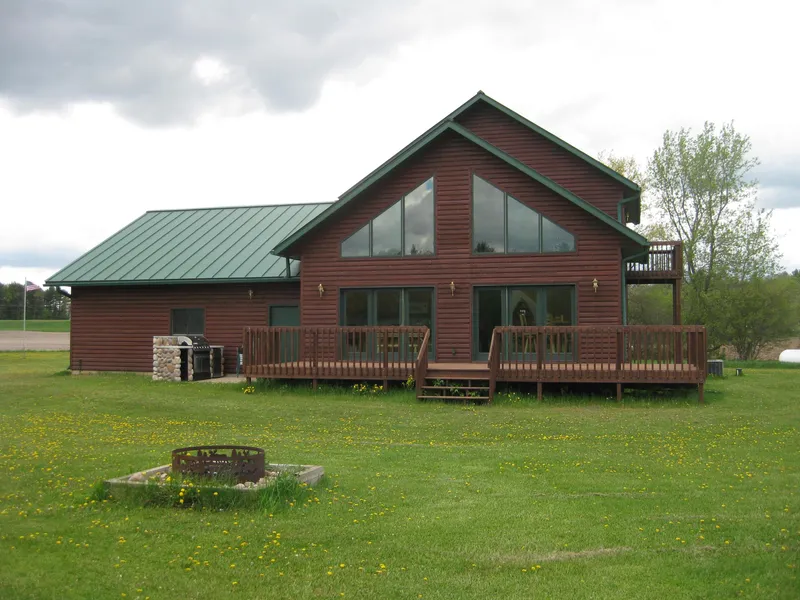 Enjoy privacy in this 2BR 2.5 BA home - MBR has 10x10 w/i closet. New carpet, wood floors, loft, open floor plan, rec rm w/bar, log siding, newer steel roof, floor to ceiling windows, large deck & patio w/built-in grill & frig make this home great for entertaining. This home is a paradise w/40ac sprawling w/deer & turkey, permanent deer stands, additional 3 car detached garage for your toys.