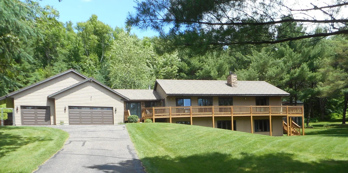 Beautiful, private custom designed country home! This 3-4 BR, 3.5 bath offers a walk-out LL to a fun hot tub area, open KT/DR/LR, nice master ste, solid exterior deck, heated 3+ car garage, energy efficient w/passive solar/wood heat/forced air! Inc 50 acres, private pond, 50x46 htd & insulated shed, & 14x30 RV storage shed w/14' door. You will love hickory flrs, Cambria counters, 6 panel doors, 4-wheel trails & MORE. Amazing & private property! Just 10 minutes to Menomonie & I-94!!