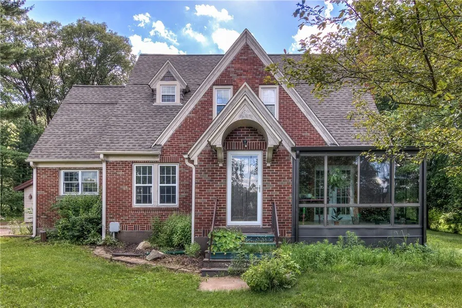 Charming home w/brick exterior that will make you feel at home! This unique home is both timeless & practical and surrounded by almost 3-acres of pretty landscaping, lush trees, & Willow Creek runs through the property. Step inside this adorable home awash w/natural light to find an open floor plan, updated kitchen w/spacious pantry, solid-surface counters & island, hardwood floors, wood-burning fireplace, & main-floor laundry (or extra bedroom). The Solarium is the perfect place to enjoy the sunshine; if you want to grow some plants, they will love it too! From the beautiful home to the countryside vibes, there is so much to love about this property. For all your hobby & toy needs, there is an oversized detached garage & additional pole building offering ample storage. Conveniently located minutes south of Eau Claire w/access to major highways. Updates include: furnace '21, electrical & plumbing updates '19, roof '18 (50 yr warranty), upstairs windows '18, AC '16, Well & Septic '15.