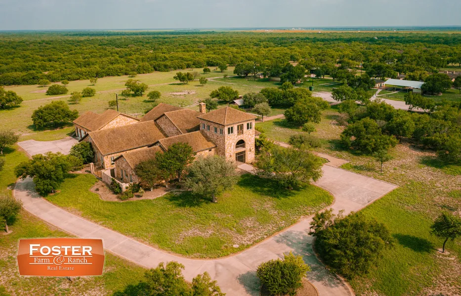 Improvements: The Main House is a custom built 9,500 square foot home with 5 bedrooms, 4 full bathrooms, 2 half baths, an office and a fitness room. Its large living room has mesquite wood floors, a one of a kind hand carved mesquite wood bar, pool table and fireplace. The kitchen has stainless appliances and opens up to the dining room. The long hallways have arched hand laid brick ceilings done by a local artisan. A 5 mile fully paved road leads directly to main headquarters from FM 681.
