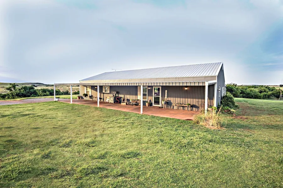 This is an amazing property that sits on 76 acres that is fully fenced with a creek and spring fed pond. You have stunning sunset views that you can enjoy from your back porch. Home is a barn style with an open floor plan, vaulted ceilings with a huge kitchen and living room.