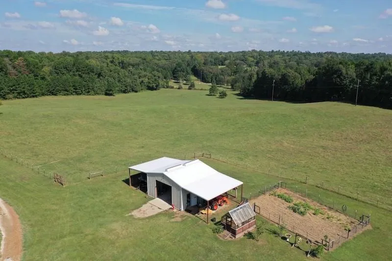 Easy Country Living sitting on beautiful rolling land with 50/50 mix of pasture and woods. If you have dreamed of a barndominium home this may be the one. The home has 2500' +/- SqFt with open living area with 2 BR, 2 Bth with master bedroom floor level, & guest bedroom & bath upstairs off the landing. The main open living area has gorgeous kitchen / living & dining area, with barn-wood interior paneling accents & stained concrete floor.The down stairs bathroom is fully updated with tub/ shower and vanity. Utility room is off master bath & bedroom. Exterior awning allows for parking & outdoor entertaining, limestone fire pit, 700 SqFt shop with implement storage wings, RV barn, greenhouse, & 40' Container. Come see to truly appreciate.